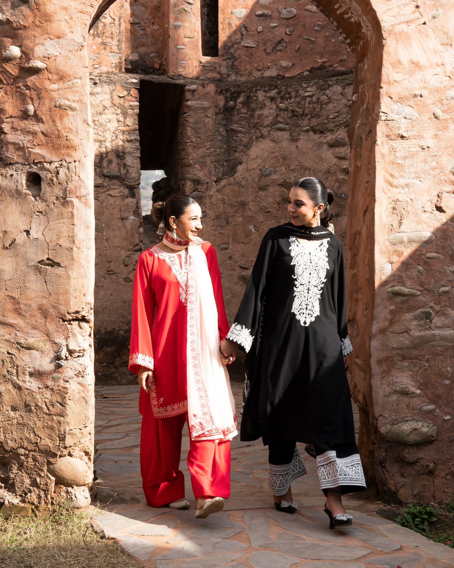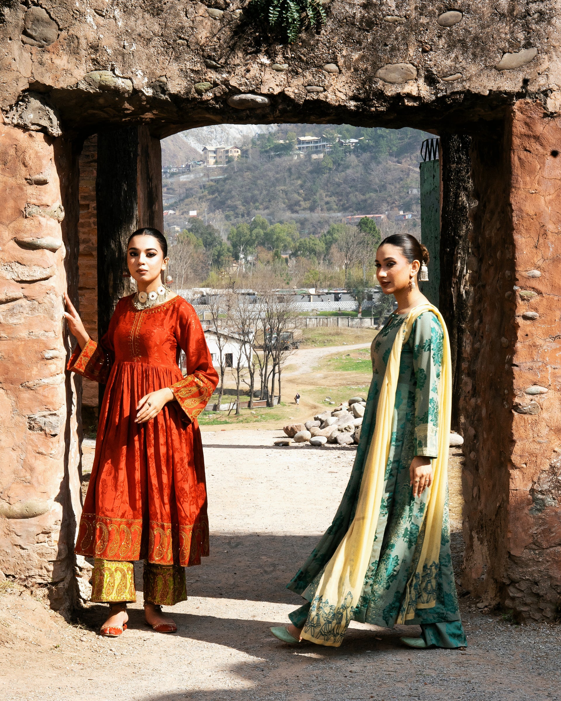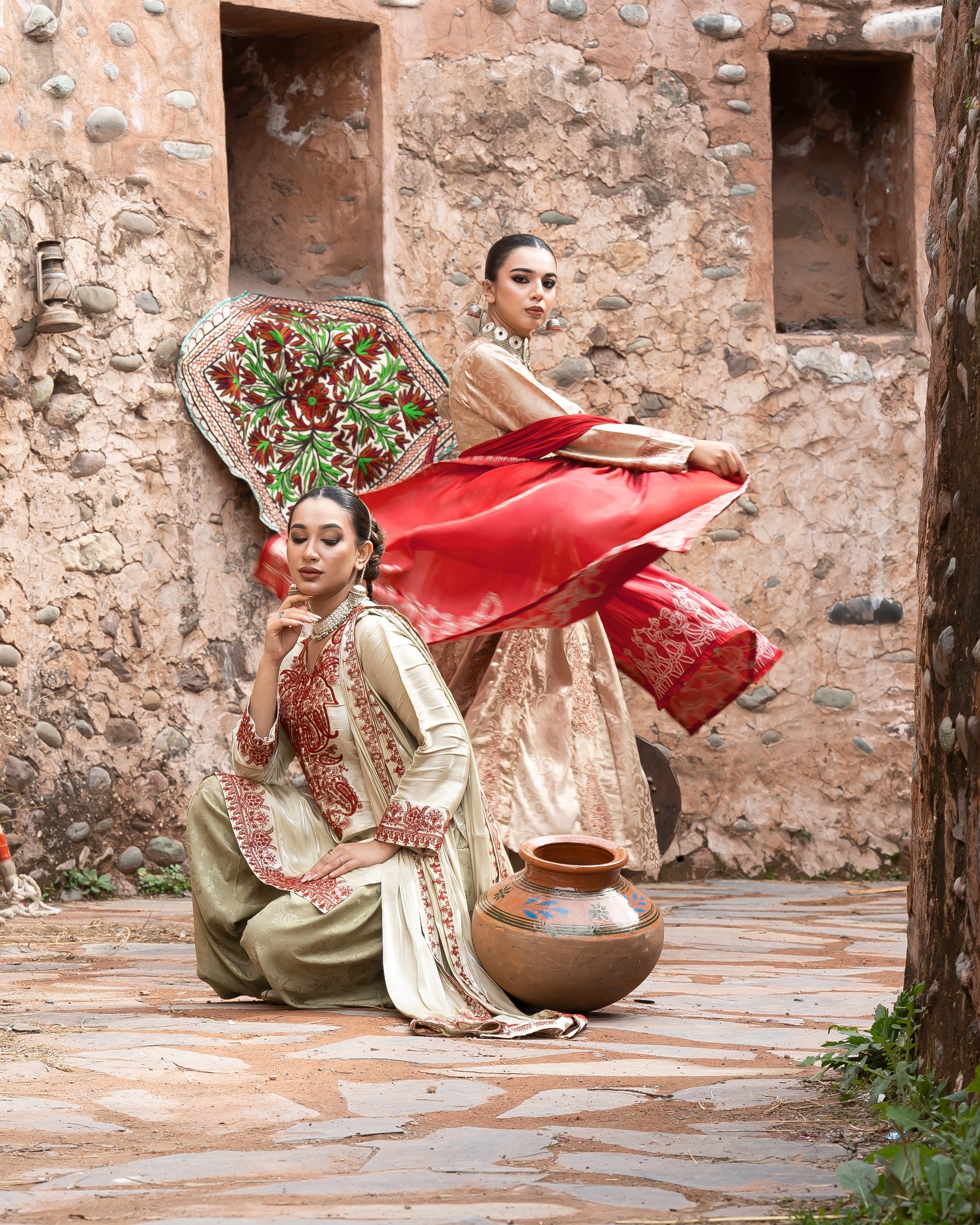 SASSI Golden Frock with Red Dupatta - 3 Pc